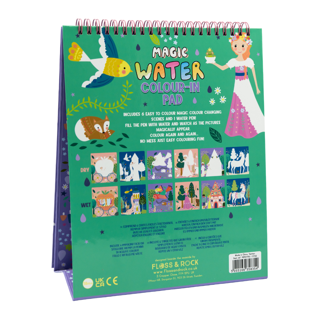 Our Magic Water Easel Pads are so much fun! Like our popular water cards, fill up the pen with water and colour in the designs to see them magically appear, then disappear once dry. The 6 brightly coloured fun sheets are held together in a spiral bound pad allowing you to flip them over once complete. The built-in easel stands the pad up so you can use it like a ‘proper’ artist! The pad is reusable over and over again and you’ll have so much fun revealing the colourful fairy tale pumpkin carriage, towers, horses, birds and more! Once you’ve finished your creative session, close the pad and secure your special water pen in the elastic closure to keep it nice and safe. This portable pad is perfect for taking out and about (and you don’t have to worry about any mess either!)